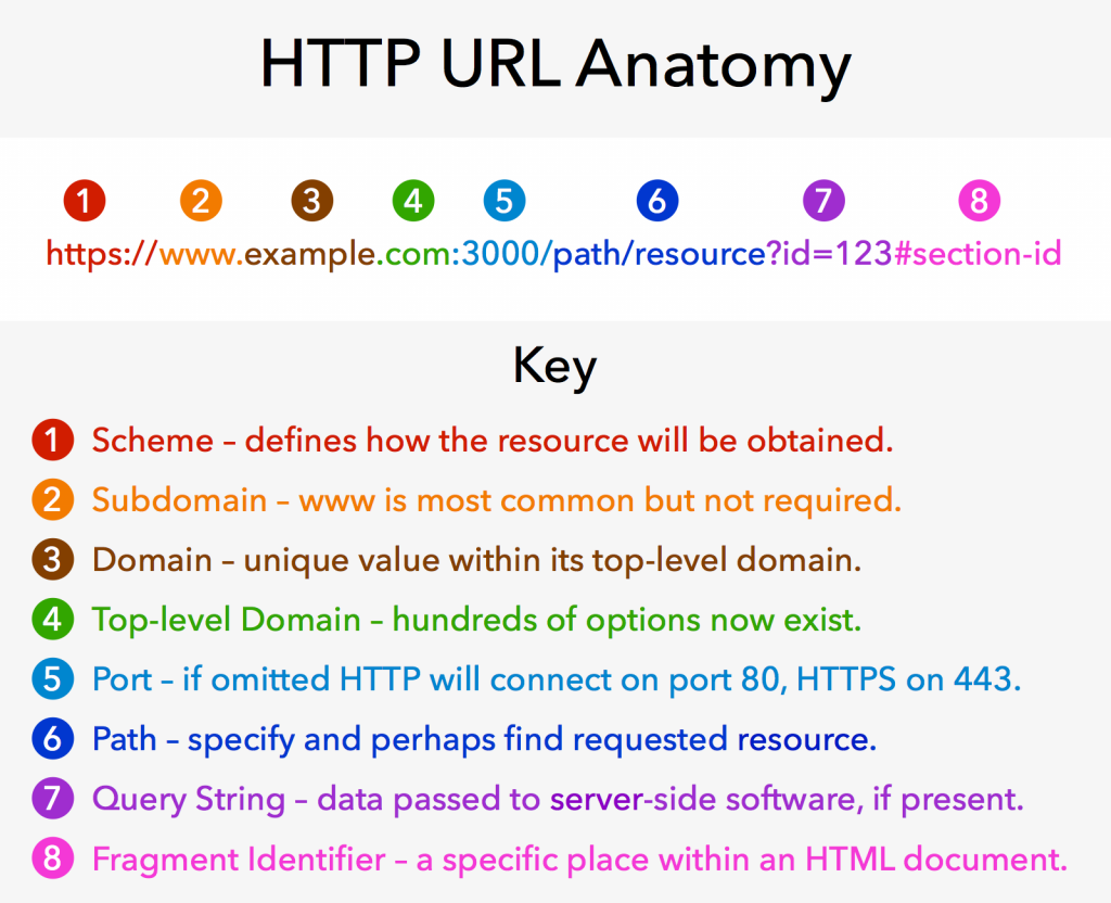 Därefter gick vi igenom de olika delarna som utgör en HTTP Request och dess svar (HTTP Response), samt de olika delarna som en URL består av.